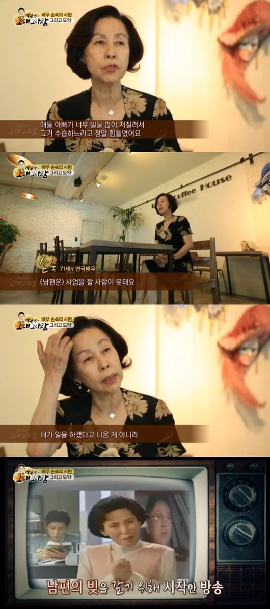 배우 손숙이 남편인 연극배우 김성옥의 사업실패로 일을 시작해야만 했었던 당시를 전했다.