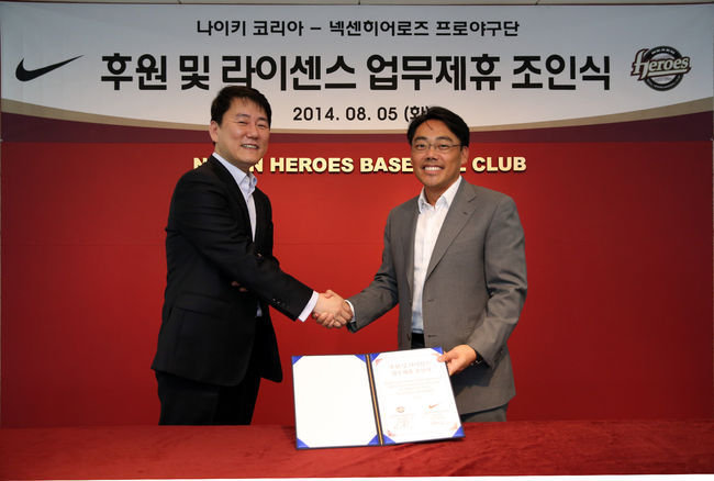 이날 실시한 조인식에는 넥센히어로즈 이장석 대표이사와 나이키코리아 피터 곽 대표이사가 참석했으며, 넥센히어로즈는 2015시즌부터 2017시즌까지 3년간 선수단이 착용하는 의류 및 스파이크를 비롯해 장비류, 가방 등 다양한 용품을 후원받고, 나이키와 공동 마케팅을 진행한다.