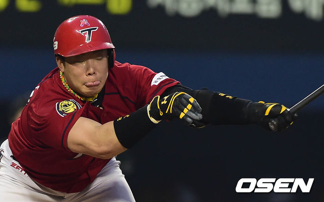 5일 오후 서울 잠실구장에서 열린 '2014 한국야쿠르트 세븐 프로야구' 두산 베어스와 KIA 타이거즈의 경기 4회초 1사 나지완이 헛스윙 삼진을 당하고 있다.
