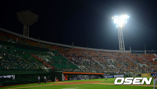 '불꺼진 조명탑' 경기 중단되는 사직구장