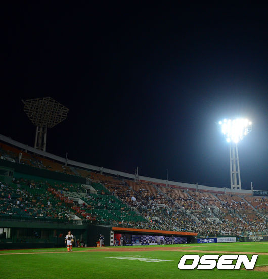 불꺼진 사직구장 조명탑 "경기가 끝난게 아니에요"