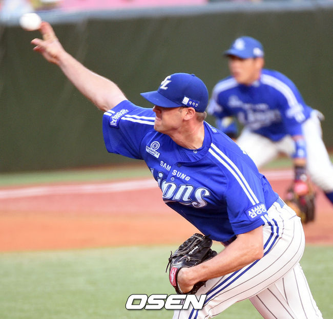 5일 오후 청주 야구장에서 열린 '2014 한국야쿠르트 세븐 프로야구' 한화 이글스와 삼성 라이온즈 경기, 삼성 선발 밴덴헐크가 공을 뿌리고 있다.