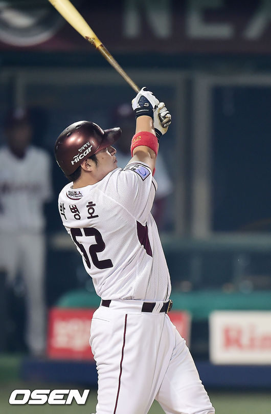 5일 오후 목동 야구장에서 열린 '2014 한국야쿠르트 세븐 프로야구' 넥센 히어로즈와 SK 와이번스의 경기, 5회말 2사 주자 1,2루 넥센 박병호가 좌월 스리런 홈런을 날리고 있다.