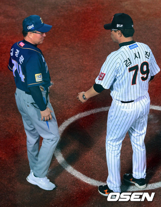 김경문 감독과 김시진 감독이 이야기를 나누고 있다.  / soul1014@osen.co.kr