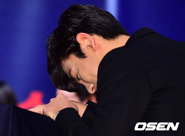 이벤트 당첨된 팬과의 팔씨름에서 진 최승현이 아쉬운 표정을 짓고 있다.