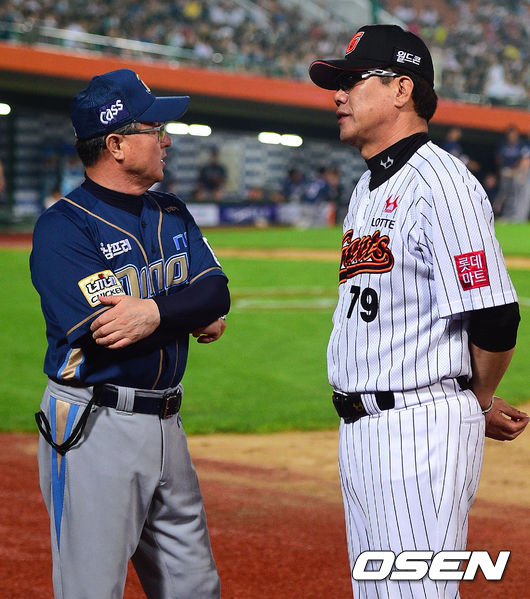 김경문 감독과 김시진 감독이 이야기를 나누고 있다. / soul1014@osen.co.kr
