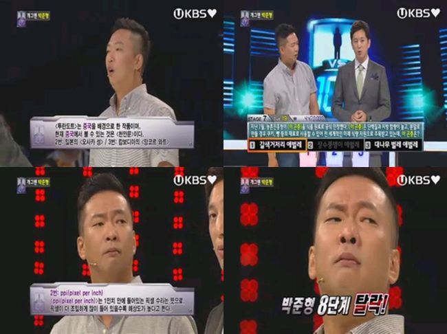 박준형은 5일 오후 9시 방송된 KBS 2TV 예능프로그램 '1대100'에 출연해 8단계에서 아쉽게 탈락했다.
