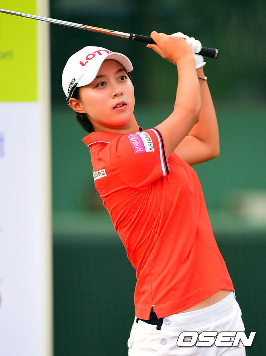 경기에 앞서 여자 골프계의 별과 부산 롯데 자이언츠 거인들이 한판 승부를 펼쳤다.