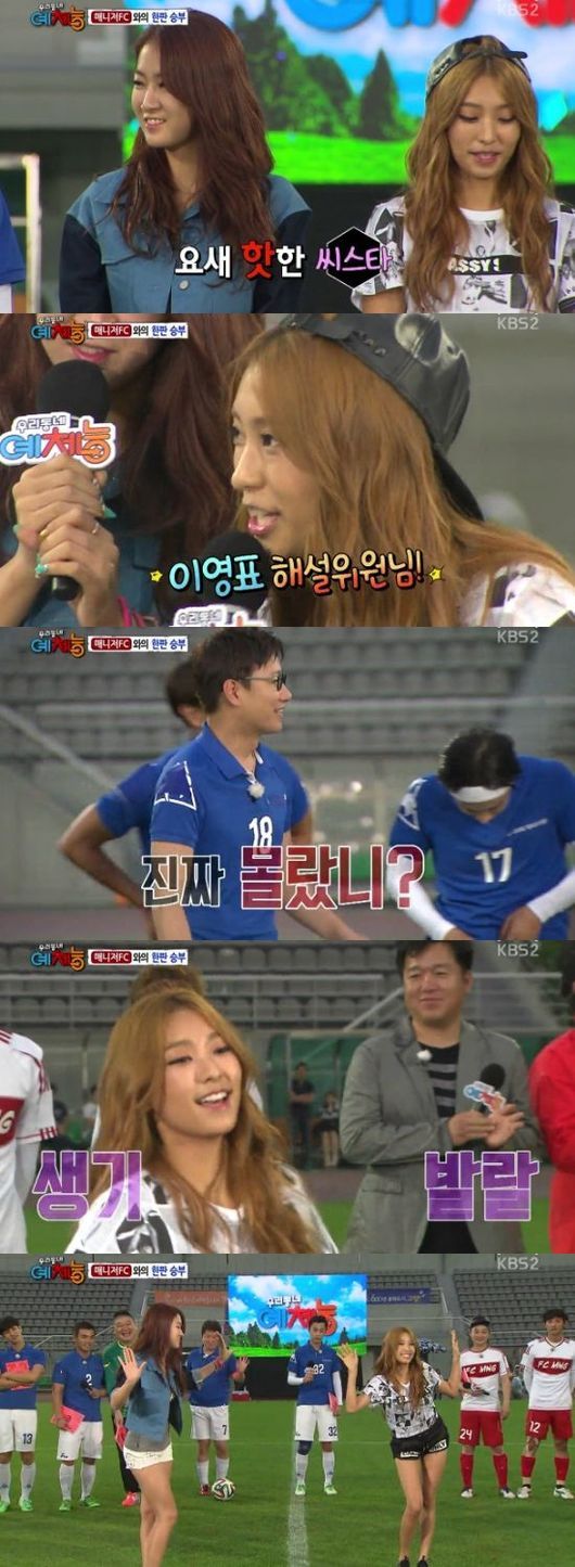 보라는 5일 오후 방송된 KBS 2TV 예능프로그램 '우리동네 예체능'에서 우리동네FC의 감독으로 등장한 이영표에 환호했다.