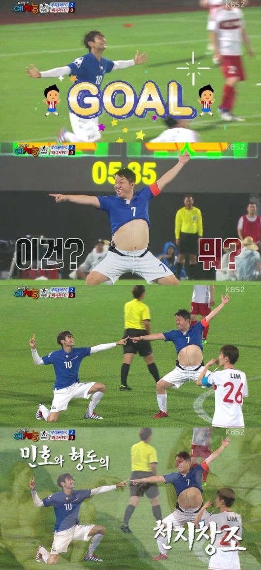 이날 방송에서 민호는 선제골에 이어 2번째 골의 주인공이 됐다. 이러한 기쁨을 감추지 못한 민호는 세레모니를 이어갔고, 그를 부르는 정형돈의 목소리를 들었던 것.