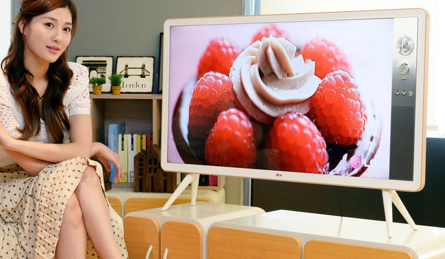 LG전자 ‘42형 클래식 TV’는 70~80년대 브라운관 TV 디자인을 현대적으로 재해석한 제품이다. 로터리 방식의 금속 소재 다이얼과 나무 무늬로 고전적인 느낌을 살리면서도, 간결한 디자인의 프레임으로 자연스러운 인테리어를 연출한다.