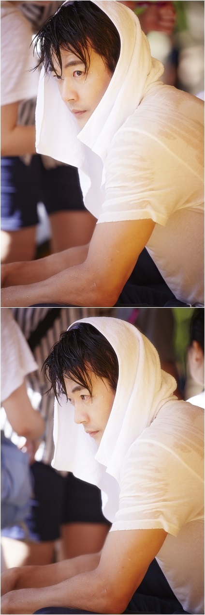특히, 젖은 티셔츠 아래로 은근히 드러나는 탄탄한 상체와 차분한 표정, 조각 같은 옆모습이 남성의 자연스러운 섹시미를 발산하고 있어 여심을 설레게 한다.