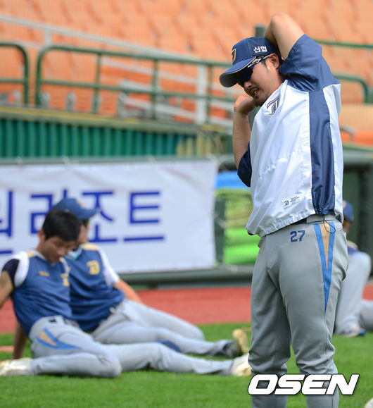 6일 오후 부산 사직구장에서 열리는 2014 한국야쿠르트 세븐 프로야구 롯데 자이언츠와 NC 다이노스의 경기전 NC 이호준이 스트레칭을 하고 있다