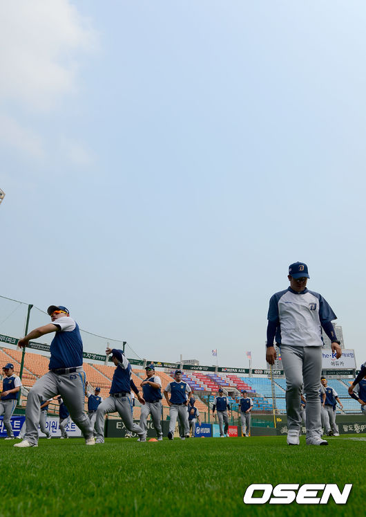 6일 오후 부산 사직구장에서 열리는 2014 한국야쿠르트 세븐 프로야구 롯데 자이언츠와 NC 다이노스의 경기전 NC 선수들이 훈련을 하고 있다.