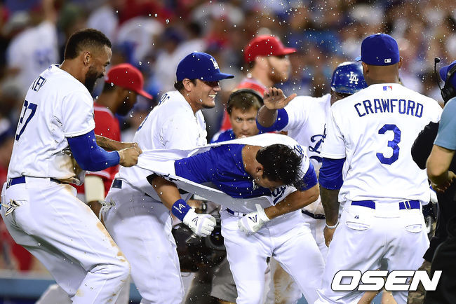 승리를 거둔 다저스 선수들이 기뻐하고 있다./youngrae@osen.co.kr