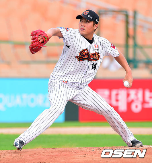 6일 오후 부산 사직구장에서 열린 2014 한국야쿠르트 세븐 프로야구 롯데 자이언츠와 NC 다이노스의 경기, 5회초 롯데 강영식 투수가 역투하고 있다.