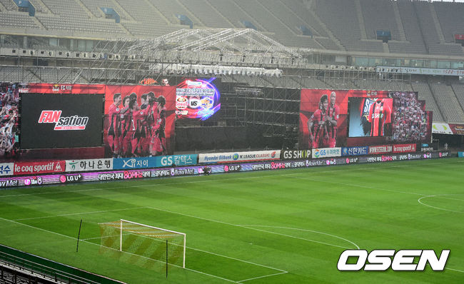 한편 이달 9일과 10일 열리는 콘서트 준비 때문에 본부석 맞은 편인 E석에 아무도 앉을 수 없다. 콘서트 무대 설치로 인해 관중 입장이 통제되고 E석은 전체가 통천으로 가려졌다./ jpnews@osen.co.kr