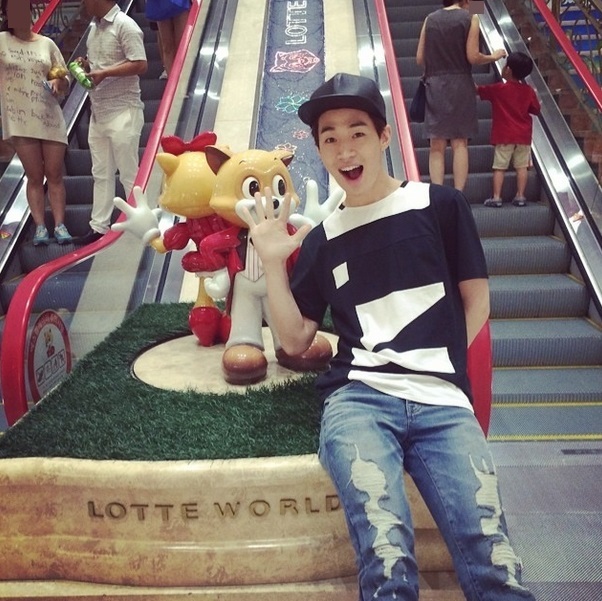 그룹 슈퍼주니어-M 멤버 헨리가 놀이공원에서 해맑은 인증 사진을 찍었다.