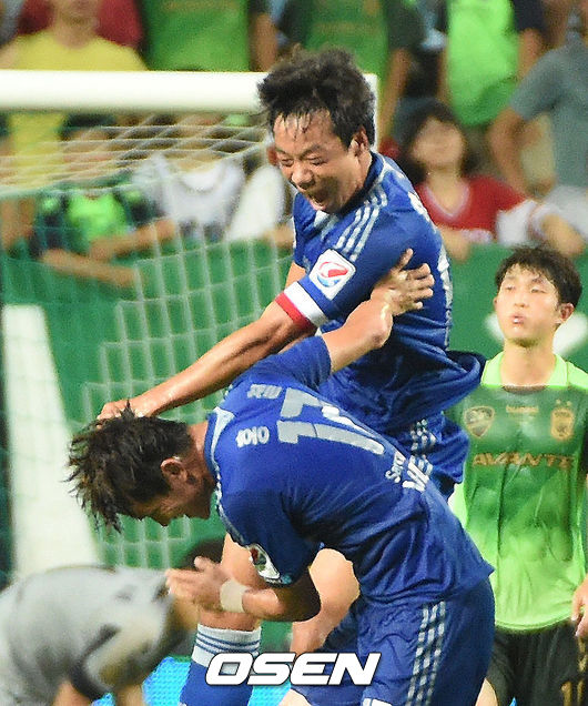 6일 오후 전주월드컵경기장에서 열린 전북 현대와 수원 삼성의 '현대오일뱅크 K리그 클래식 2014' 19라운드 경기, 전반 염기훈이 동점골을 성공시키며 환호하고 있다.