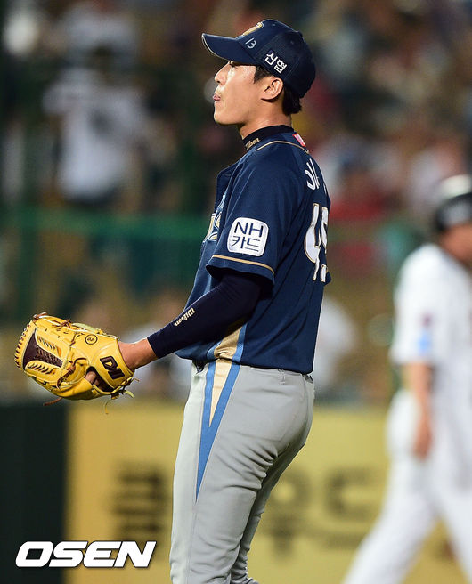 6일 오후 부산 사직구장에서 열린 2014 한국야쿠르트 세븐 프로야구 롯데 자이언츠와 NC 다이노스의 경기, 3회초 2사 만루 롯데 박기혁에게 밀어내기 볼넷으로 역전 허용한 NC 이태양 투수가 아쉬워하고 있다