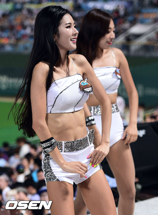 6일 오후 부산 사직구장에서 열린 2014 한국야쿠르트 세븐 프로야구 롯데 자이언츠와 NC 다이노스의 경기,롯데 치어리더가 멋진 무대를 펼치고 있다.