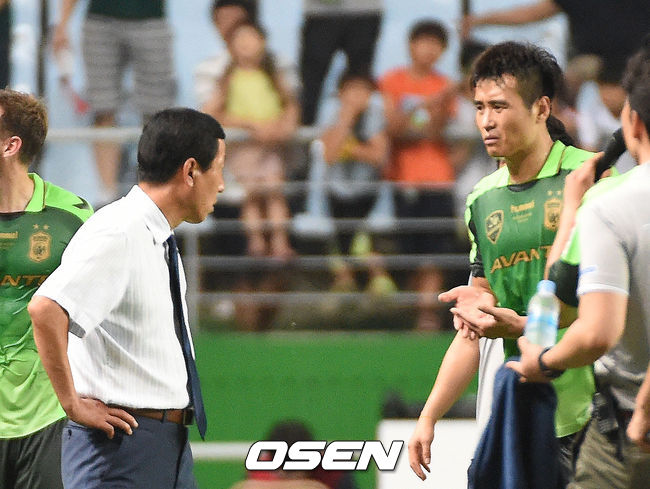 경기 종료후 최강희 감독이 이동국의 부상 상태를 점검하고 있다./ ajyoung@osen.co.kr