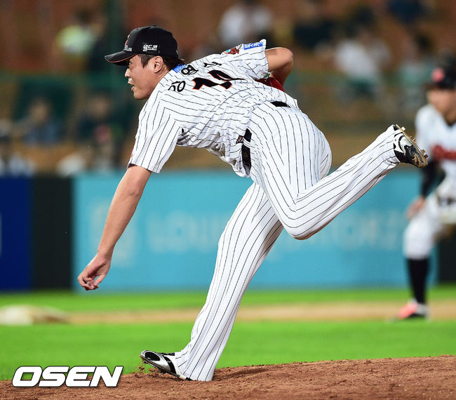6일 오후 부산 사직구장에서 열린 2014 한국야쿠르트 세븐 프로야구 롯데 자이언츠와 NC 다이노스의 경기, 6회초 롯데 강영식 투수가 역투하고 있다. 강영식은 이날 서스펜디드 게임에도 등판한 바 있다.