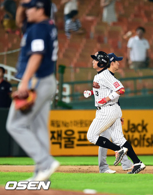 6일 오후 부산 사직구장에서 열린 2014 한국야쿠르트 세븐 프로야구 롯데 자이언츠와 NC 다이노스의 경기, 8회말 롯데 황재균이 2점 홈런을 날린후 베이스를 돌고 있다.
