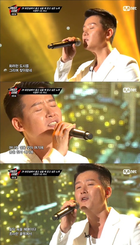 6일 방송된 Mnet '싱어게임'에서 이현우는 2라운드 '화장실에서 울고 싶을 때'를 테마로 지나와 대결을 펼쳤다.