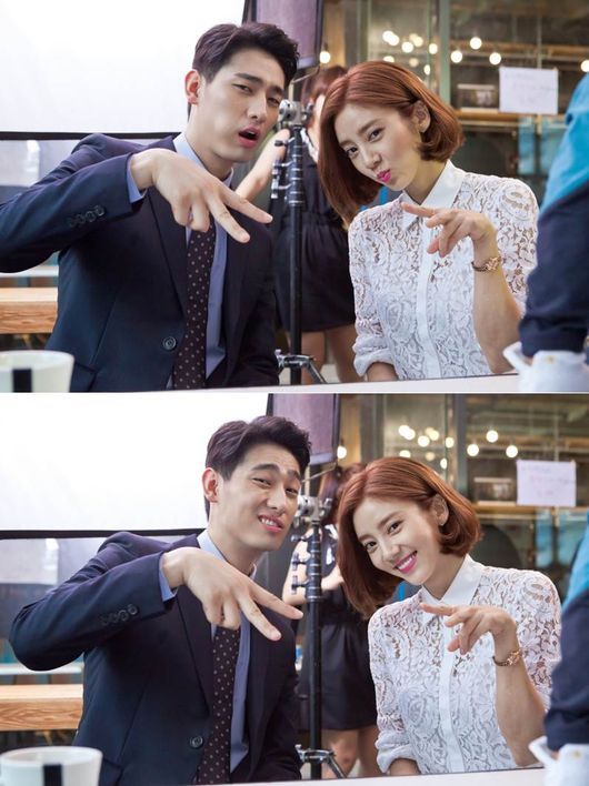 공개된 사진에서 윤박과 손담비는 아래로 향한 승리의 브이 포즈와 통통 튀는 발랄한 표정으로 커플 호흡을 과시하고 있다.