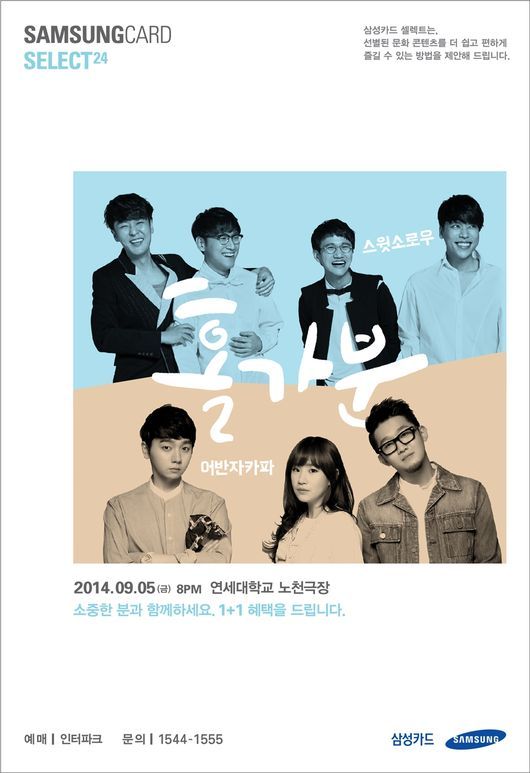 한편, 스윗소로우와 어반자카파가 함께하는 삼성카드 셀렉트 24 '홀가분 콘서트 with 스윗소로우, 어반자카파'는 오늘(7일) 오후 2시 인터파크를 통해 티켓이 오픈된다.