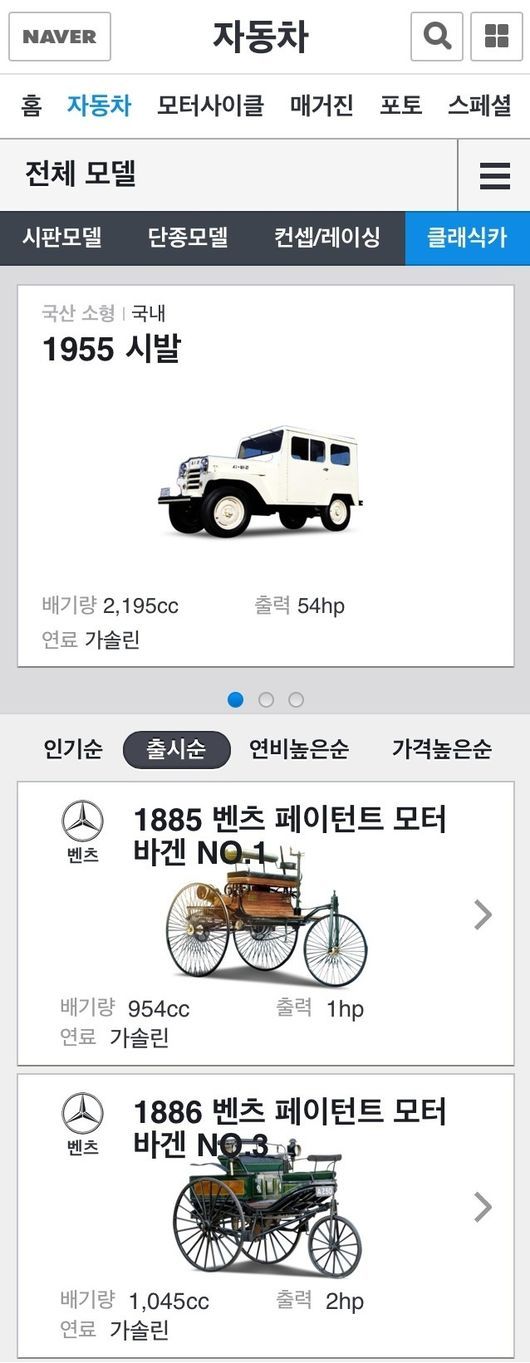 네이버는 한 시대를 풍미했던 클래식카의 제원 정보나 이미지 등을 네이버 자동차를 통해 제공한다고 밝혔다.
