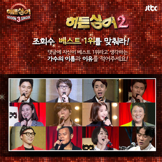 JTBC ‘히든싱어3 비긴즈2’가 ‘히든싱어2’ 방송 중 최고의 조회수를 기록한 무대를 찾는 이벤트를 JTBC 히든싱어 공식 페이스북을 통해 실시한다.