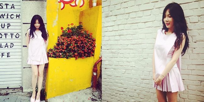 공개된 사진 속 현아는 꽃이 만발한 화단 옆에서 눈을 내리깔고 수줍은 듯한 포즈를 취하고 있는 모습이다. 특히 그는 연분홍빛 원피스와 구두로 ‘소녀’ 스타일을 완성해 뭇 남성들의 마음을 흔들고 있다.