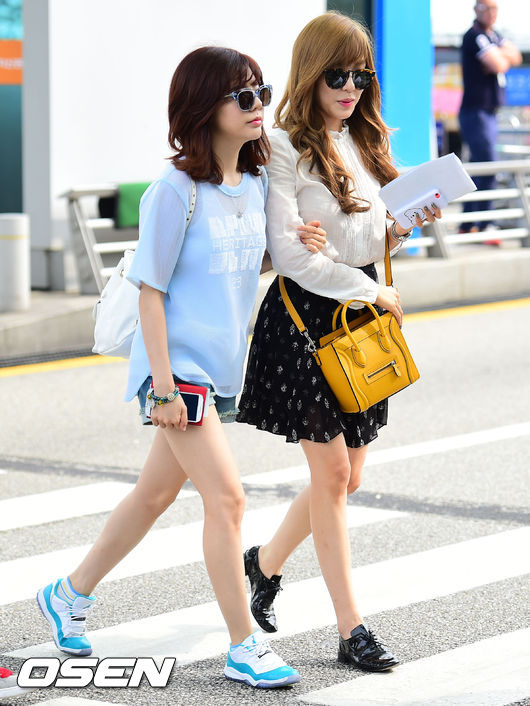 발맞추어 걷는 써니-티파니,'즐거운 출국길'