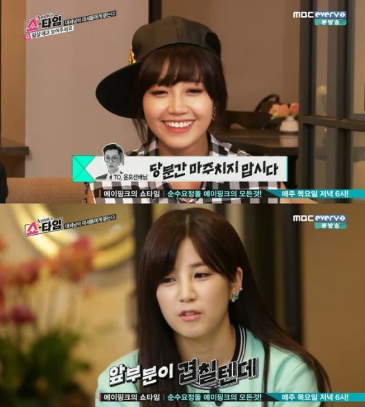 한편 ‘쇼타임’은 엑소, 비스트에 이어 이번이 세 번째 시즌으로 아이돌그룹의 일상과 궁금증 해결을 담으며 MBC에브리원의 인기 예능프로그램으로 자리잡았다. 에이핑크는 2011년 데뷔한 후 ‘마이 마이’, ‘노노노’, ‘미스터 추’ 등으로 사랑을 받았으며, 박초롱·윤보미·정은지·손나은·김남주·오하영으로 구성돼 있다.