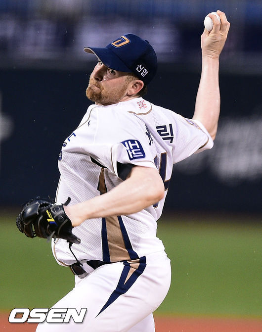 7일 경남 창원 마산구장에서 열린 2014 한국야쿠르트 세븐 프로야구 NC 다이노스와 LG 트윈스의 경기, 1회초 NC 선발투수 에릭이 역투하고 있다