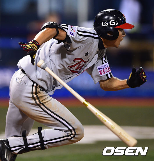 7일 경남 창원 마산구장에서 열린 2014 한국야쿠르트 세븐 프로야구 NC 다이노스와 LG 트윈스의 경기, 8회초 1사 LG 김용의가 안타를 날리고 있다.
