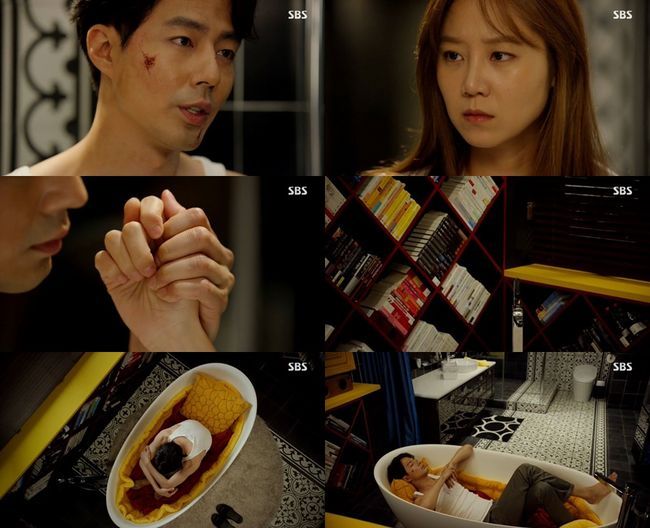 상처가 나 돌아온 재열의 모습을 본 해수는 재열을 쫓아 그가 있는 화장실로 향했고, 재열의 얼굴을 치료해주기 시작했다.