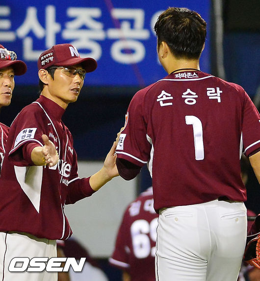 경기를 마치고 넥센 염경엽 감독이 손승락과 기쁨을 나누고 있다. / rumi@osen.co.kr