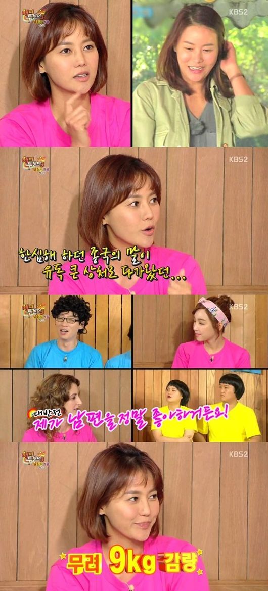 박잎선은 7일 오후 11시 10분 방송된 KBS 2TV '해피투게더3'에서 "최근 9kg을 뺐다"며 "송종국의 독설 때문이었다"고 말했다.