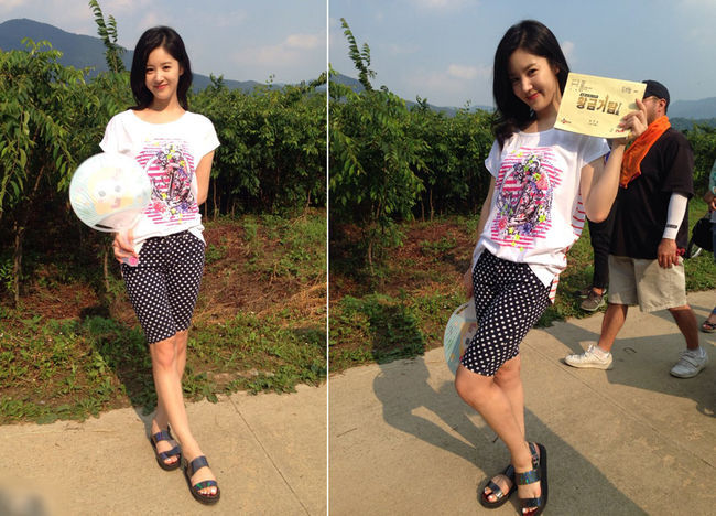 8일 소속사 마코어뮤즈먼트를 통해 공개된 2장의 사진 속의 손성윤은 더운 여름 촬영에 필수품인 부채를 들고 서 있는 모습, 황금거탑 대본 인증 사진까지 공개했다. 또한 사진 속의 손성윤은 농촌 배경의 패셔니스타답게 땡땡이 바지가 인상에 깊다.