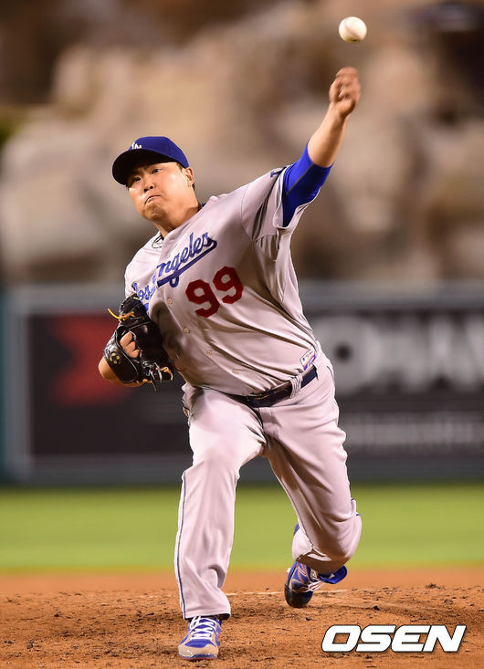 류현진은 8일(이하 한국시간) 미국 캘리포니아주 애너하임 엔젤 스타디움에서 열린 LA 에인절스와 경기에 선발 등판, 7이닝까지 무실점 행진하고 있다. 투구수는 100개를 기록 중이다.