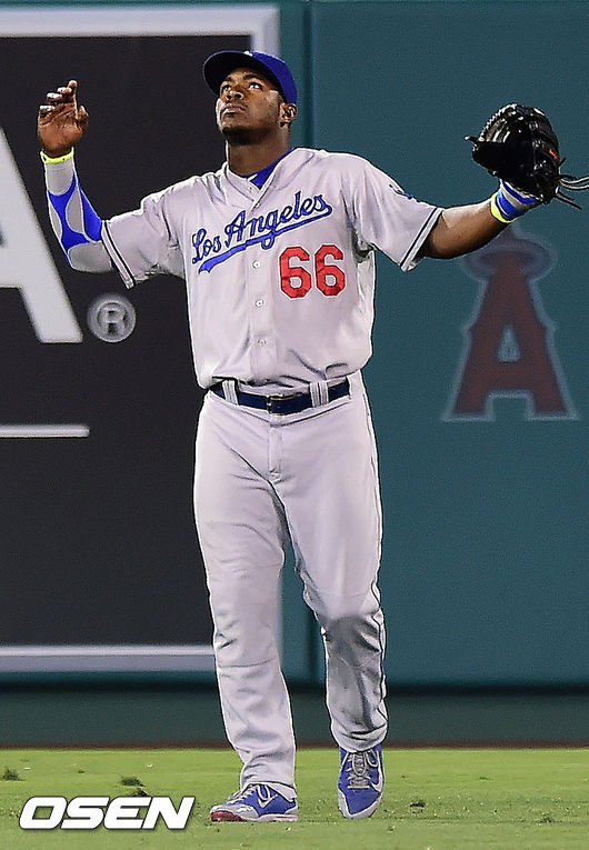 승리를 거둔 다저스 푸이그가 세레머니를 하고 있다./youngrae@osen.co.kr