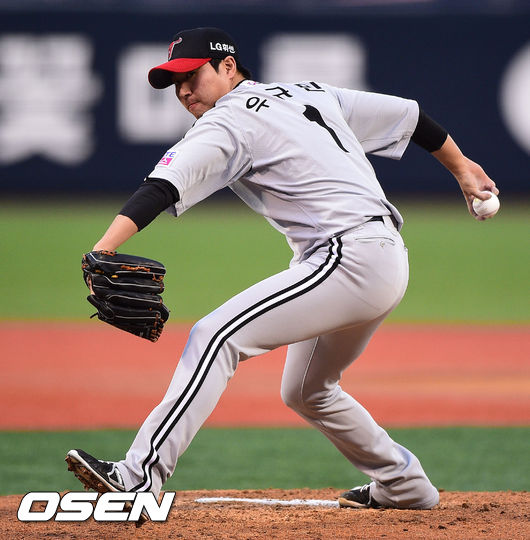 8일 오후 경남 창원 마산구장에서 열린 2014 한국야쿠르트 세븐 프로야구 NC 다이노스와 LG 트윈스의 경기, 1회말 LG 선발투수 우규민이 역투하고 있다
