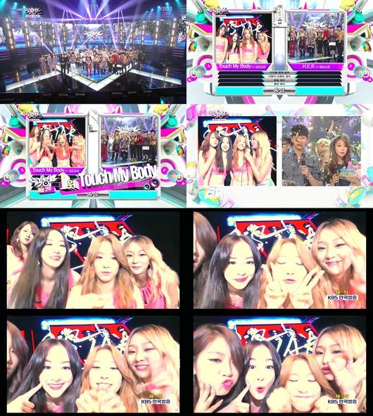 씨스타는 8일 오후 방송된 KBS 2TV 가요프로그램 ‘뮤직뱅크’에서 ‘터치 마이 바디(Touch My Body)’로 블락비의 ‘헐(HER)’을 제치고 1위 영예를 안았다.