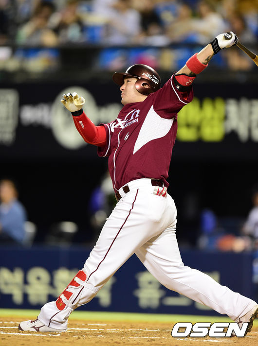 6회초 2사 1루에서 넥센 박병호가 투런포를 날리고 있다.