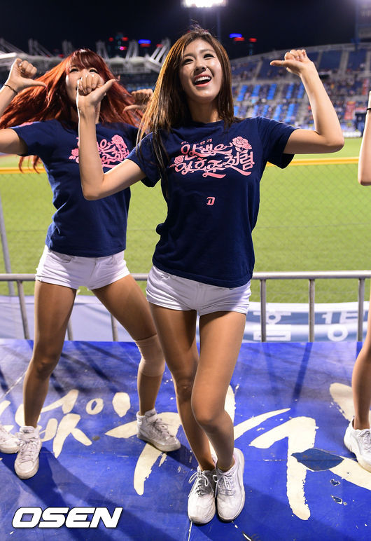 8일 오후 경남 창원 마산구장에서 열린 2014 한국야쿠르트 세븐 프로야구 NC 다이노스와 LG 트윈스의 경기,NC 치어리더가 멋진 무대를 펼치고 있다.