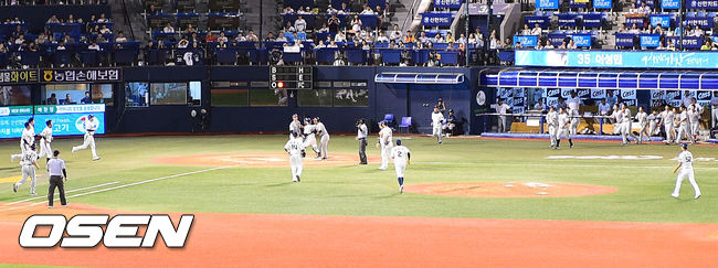 8일 오후 경남 창원 마산구장에서 열린 2014 한국야쿠르트 세븐 프로야구 NC 다이노스와 LG 트윈스의 경기,8회초 1사 손주인의 사사구때 양팀 벤치클리어링이 펼쳐지고 있다.