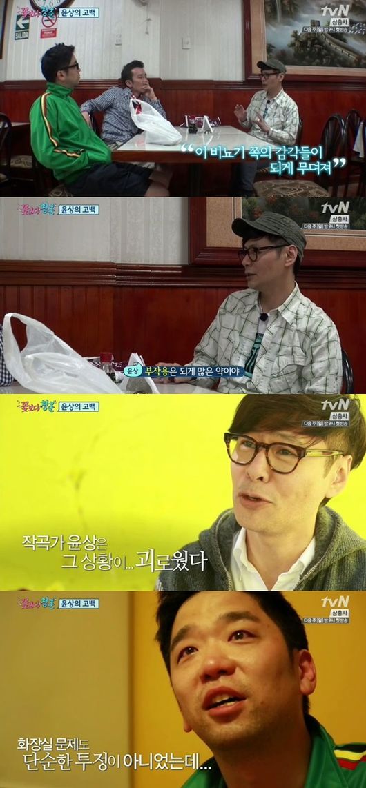 윤상은 동생들의 앞에서 "그 약이 다 좋은데 그게 문제다. 비뇨기과쪽의 감각들이 되게 무뎌진다. 부작용이 되게 많은 약이다. 불면증도 있다"고 운을 뗐다. 이어진 그의 고백은 바로 우울증 약의 복용 사실이었다.